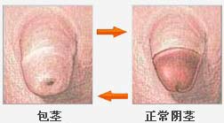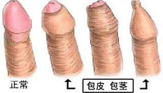 二、包茎:包皮口过小,使包皮不能上翻显露出阴茎头。包茎可分为以下几种类型: