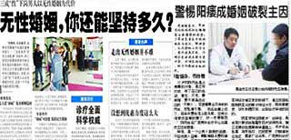 临床报道显示:男人不举成为婚姻家庭破裂、出轨的主要因,长期的无性婚姻使男人自信心倍受打击,从而萎靡不振。自行用药或久拖不治很会加重病情,给治疗带来极大的困难,引发男性不育等危害。